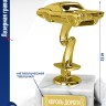 Наградная статуэтка с фигурой гоночного автомобиля. Подходит для размещения в интерьерах автоклубов и коллекциях спортивных трофеев.
