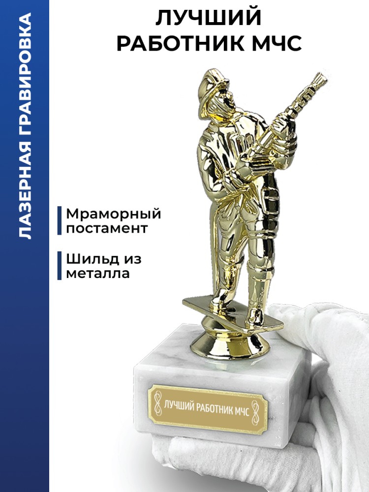 Статуэтка Пожарный на мраморном постаменте - символ отваги, службы и преданности делу.