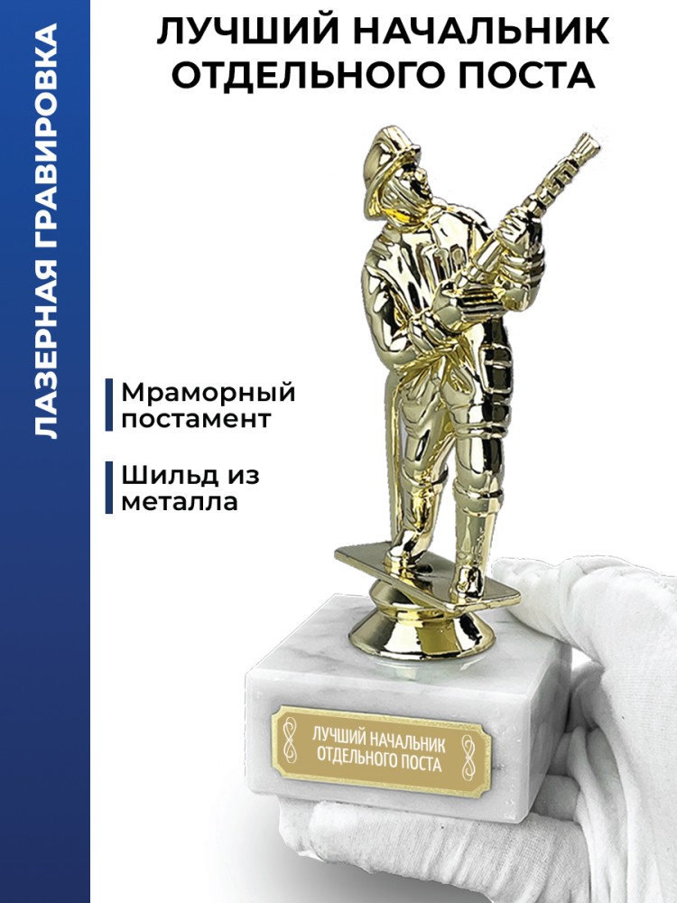 Статуэтка Пожарный на мраморном постаменте - символ отваги, службы и преданности делу.