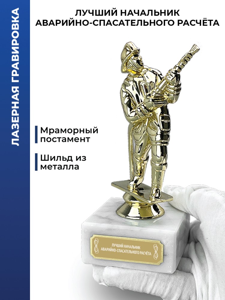 Статуэтка Пожарный на мраморном постаменте - символ отваги, службы и преданности делу.