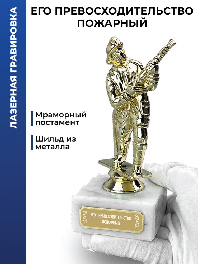Статуэтка Пожарный на мраморном постаменте - символ отваги, службы и преданности делу.