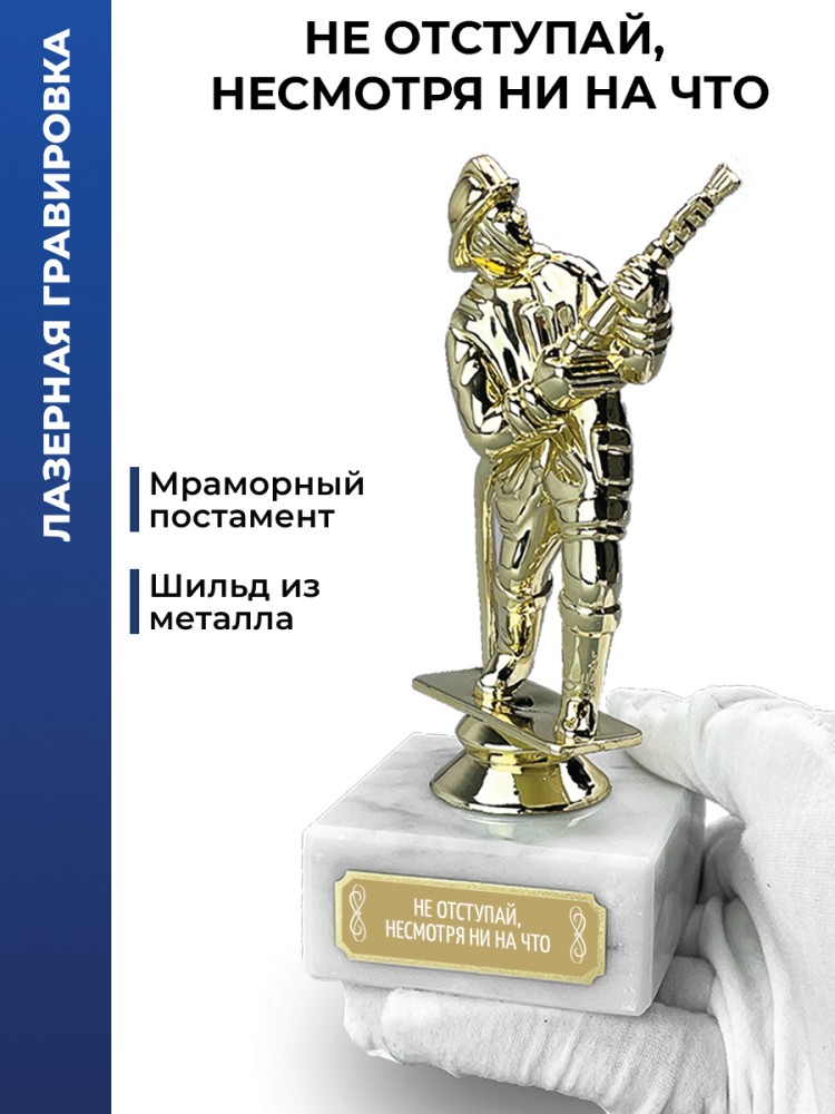 Статуэтка Пожарный на мраморном постаменте - символ отваги, службы и преданности делу.
