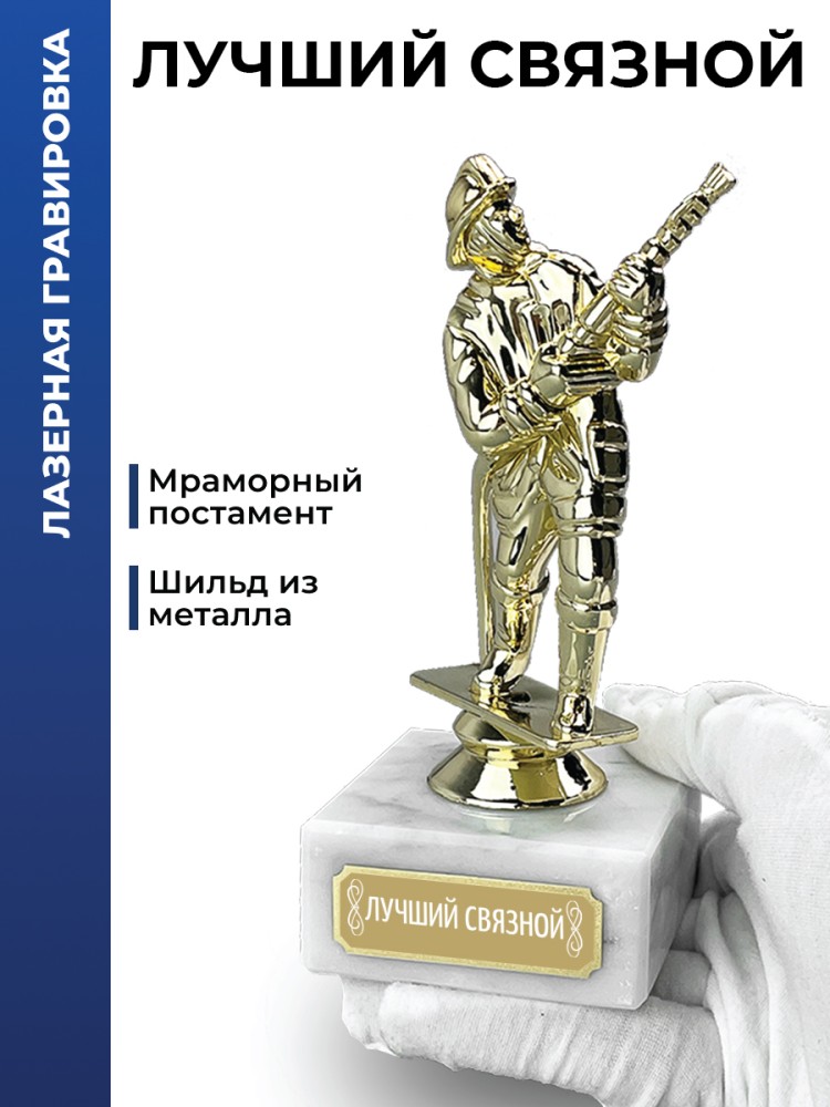 Размер: 14,8 х 6,5 х 6,5 см. Высота статуэтки без постамента: 11,8 см., с постаментом: 14,8 см. Размер постамента: 6,5 х 6,5 х 3 см. Лазерная гравировка нанесена на металлическую табличку (шильдик: 5 х 1,7 см), приклеенную к подставке. Материал: Пластик (фигурка), Мрамор (постамент-подставка). Вес: 364 гр. Статуэтка Пожарный на мраморном постаменте - символ отваги, службы и преданности делу. Оригинальный подарок, который подойдет на любой праздник или награждение. Он станет достойной памятной наградой за победы и достижения от коллектива на память. Сувенир символизирует не только личные успехи, но и благодарность за труд и преданность делу. Актуально в качестве новогоднего сюрприза мужу, отцу, взрослому родственнику, преподавателю или юбиляру. Считается хорошим корпоративным подарком как для мужчин (папе, дедушке, руководителю, сыну подростку, брату, другу, любимому парню, начальнику). Подарок для сотрудника МЧС - спасателя, пожарного, героя ликвидатора, специалиста по эвакуации, тушению пожаров или устранению последствий техногенных катастроф. Это знак признания за храбрость, самоотверженность и службу под девизом: «Предотвратить. Спасти. Помочь». Подойдёт ко Дню спасателя Российской Федерации (27 декабря), при награждении, завершении службы или в благодарность за вклад в обеспечение безопасности. 1935