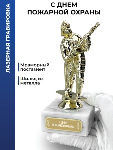 Статуэтка Пожарный на мраморном постаменте - символ отваги, службы и преданности делу.