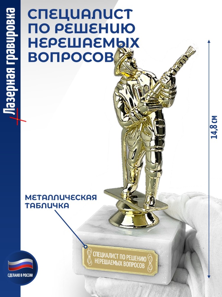 Статуэтка Пожарный на мраморном постаменте - символ отваги, службы и преданности делу.