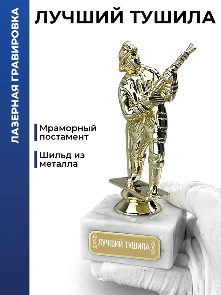 Статуэтка Пожарный на мраморном постаменте - символ отваги, службы и преданности делу.