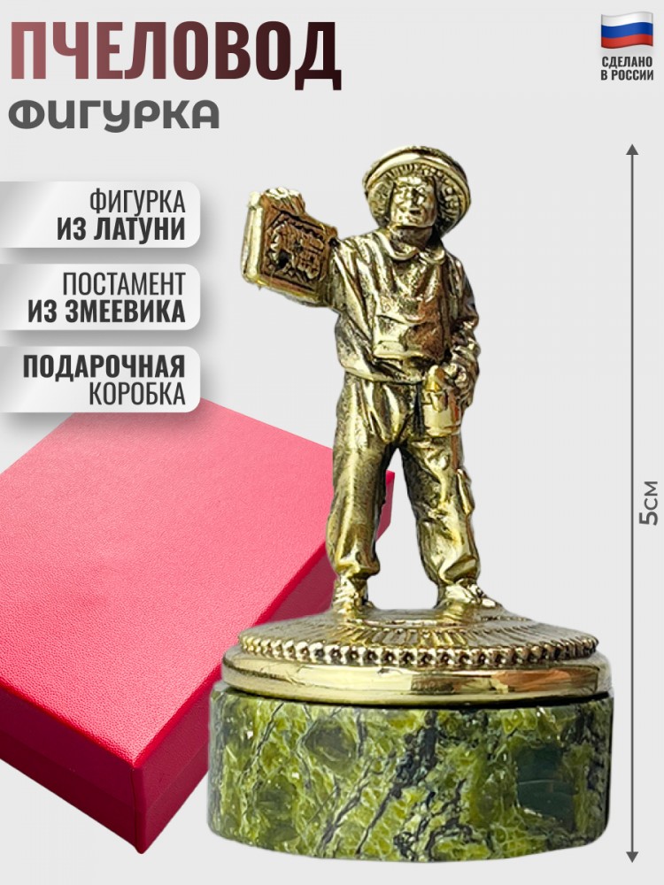 Фигурка "Пчеловод" из латуни и змеевика (5 см) - описание товара