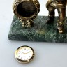 Письменный прибор из бронзы и змеевика с часами и ручкой на подставке. Художественное оформление ручной работы для интерьера кабинета, рабочего стола или коллекции сувениров.