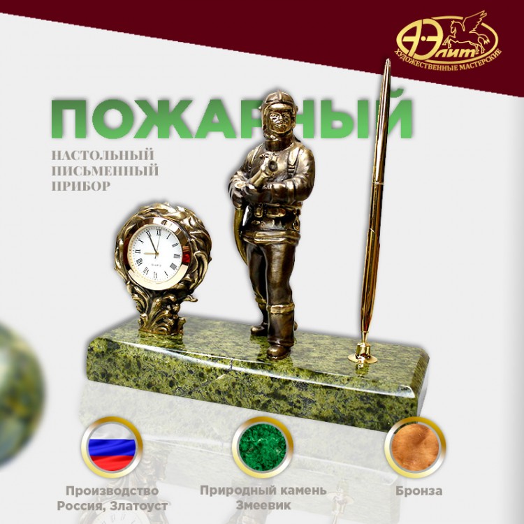 Комплектация: Часы, статуэтка, подставка для ручки, ручка.