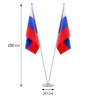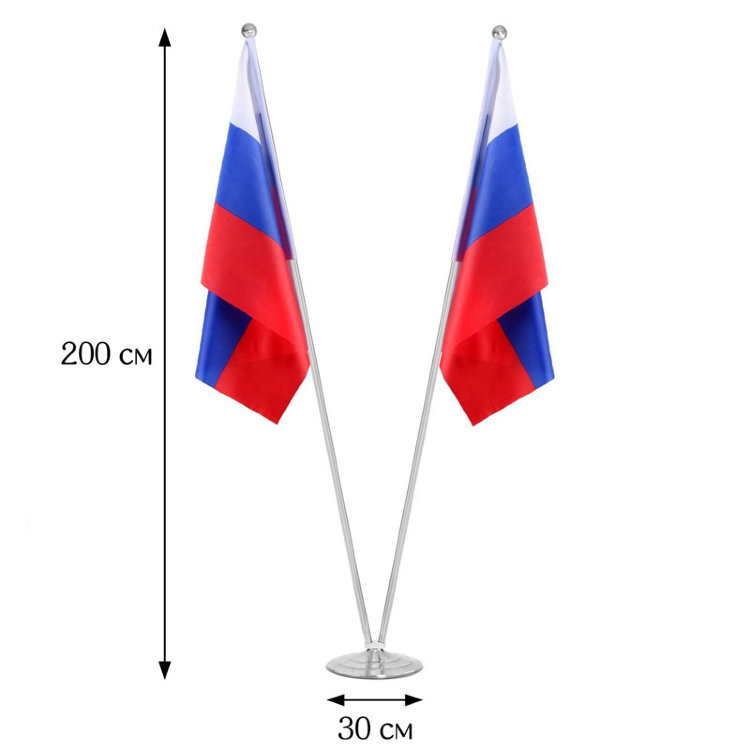 Флаг в комплект не входит, на древко можно повесить любой флаг с карманом под древко, но обычно на них вешают плотные атласные двусторонние флаги, купить можно здесь.