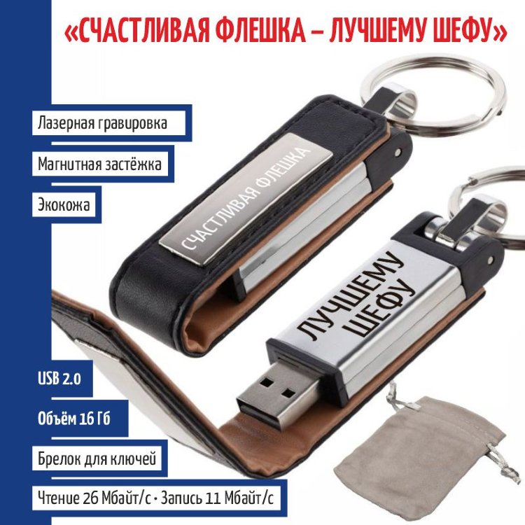 Лучшему шефу можно подобрать презент, который подчеркнёт его статус и профессионализм. Счастливая флешка станет практичным и символичным вариантом.