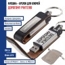 Лазерная гравировка нанесена на шильдик чехла и на лицевую сторону флешки.