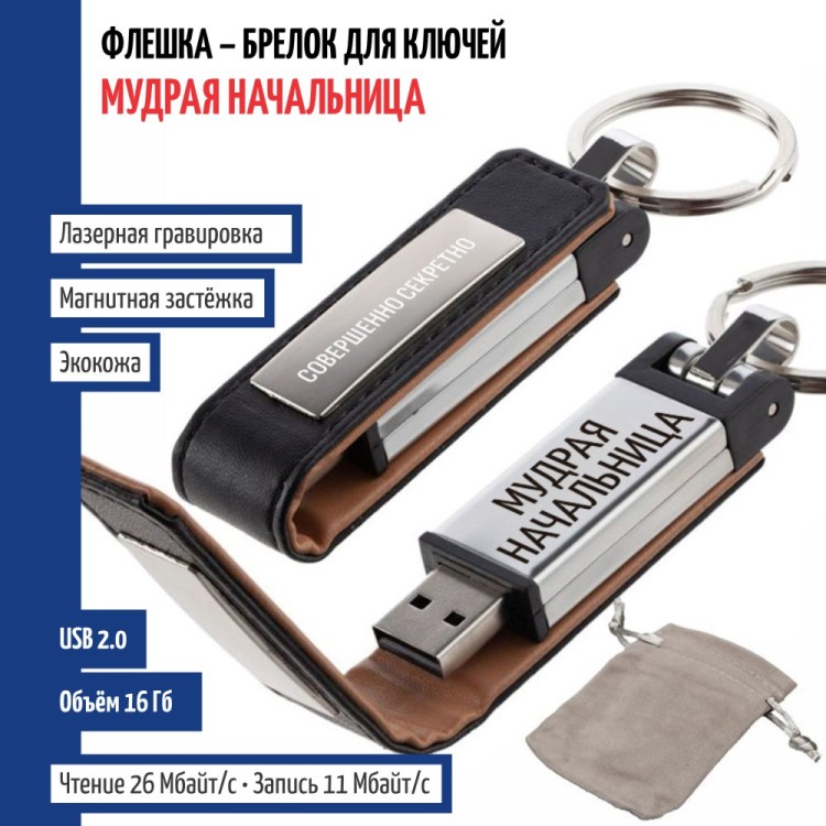 Подарочный USB флеш-накопитель в кожаном чехле объемом 16 Гб с надписью. Этот сувенирный Flash-накопитель в кейсе из кожи не только предоставляет большое пространство для хранения ваших данных, но и олицетворяет элегантность и функциональность.