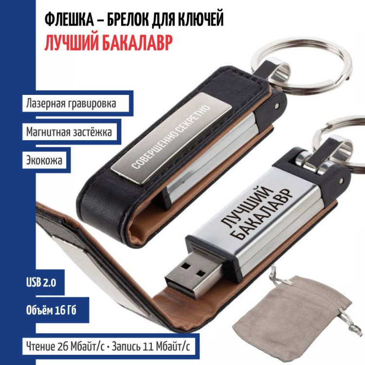 Подарочный USB флеш-накопитель в кожаном чехле объемом 16 Гб с надписью. Этот сувенирный Flash-накопитель в кейсе из кожи не только предоставляет большое пространство для хранения ваших данных, но и олицетворяет элегантность и функциональность.