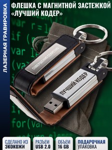 Подарочный USB флеш-накопитель в кожаном чехле объемом 16 Гб с надписью. Этот сувенирный Flash-накопитель в кейсе из кожи не только предоставляет большое пространство для хранения ваших данных, но и олицетворяет элегантность и функциональность.