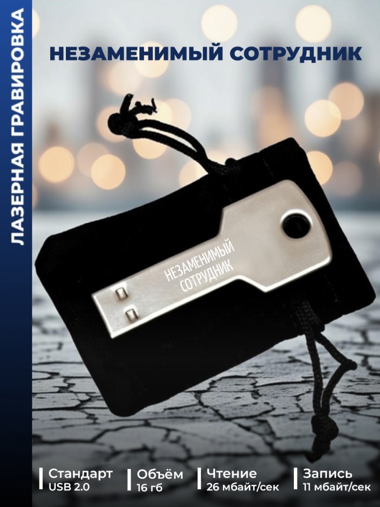 Подарочный USB флеш-накопитель "ключ" объемом 16 Гб с надписью. Этот сувенирный Flash-накопитель не только предоставляет большое пространство для хранения ваших данных, но и олицетворяет элегантность и функциональность.