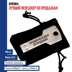 Подарочный USB флеш-накопитель "ключ" объемом 16 Гб с надписью. Этот сувенирный Flash-накопитель не только предоставляет большое пространство для хранения ваших данных, но и олицетворяет элегантность и функциональность.