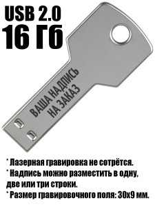 Флешка в виде ключа с гравировкой НА ЗАКАЗ (16 Гб) - описание товара