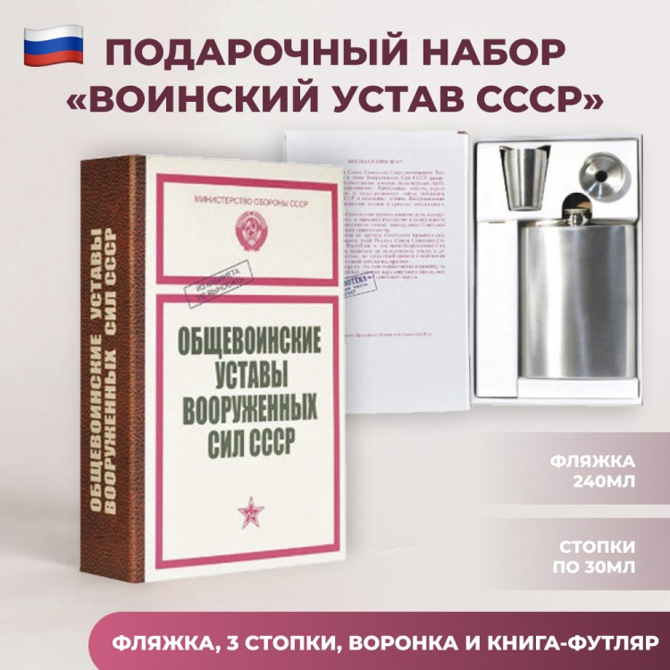| Комплектация | Фляжка, Три стопки (по 30 мл), Воронка, Книга-футляр |