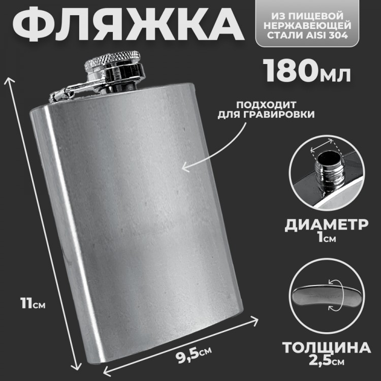 Фляжка без рисунка на 180 мл-элегантность и функциональность. Идеальный аксессуар для настоящих гурманов.