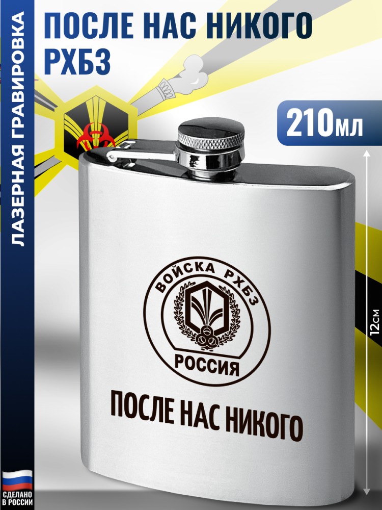 Лазерная гравировка нанесена на лицевую сторону фляжки.