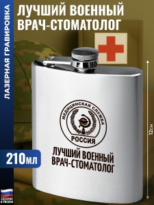 Фляжка МедСлужба "Лучший военный врач-стоматолог" (210 мл) - описание товара