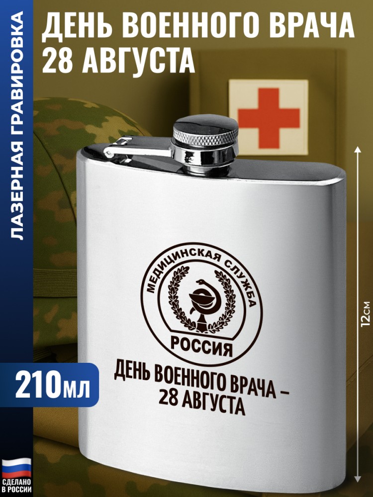 Фляжка МедСлужба "День военного врача – 28 августа" (210 мл) - описание товара