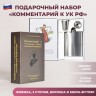 Подарочный набор состоит из металлической фляжки, трёх стопок, воронки для удобного наполнения и футляра в виде книги.