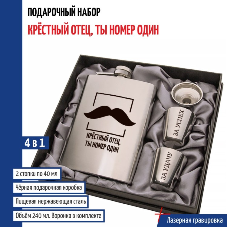 Набор "Крёстный отец, ты номер один" (фляжка, стопки, воронка) - описание товара