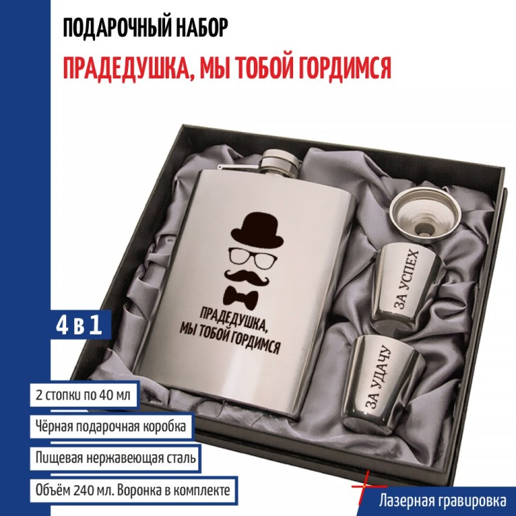 Набор "Прадедушка, мы тобой гордимся" (фляжка, стопки, воронка) - описание товара