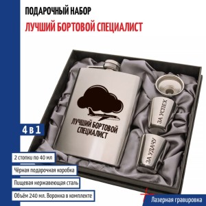 | Комплектация | Фляжка (240 мл), Воронка, Две стопки (по 30 мл) |