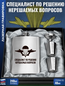 | Комплектация | Фляжка (240 мл), Воронка, Две стопки (по 30 мл) |