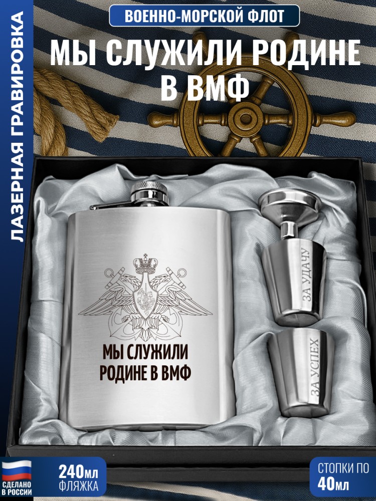 | Комплектация | Фляжка (240 мл), Воронка, Две стопки (по 30 мл) |