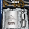 Набор 4 в 1 включает в себя стальную фляжку серебряного цвета (с надписью), что идеально подходит для крепкого или безалкогольных напитков (алкоголя, воды и др.).