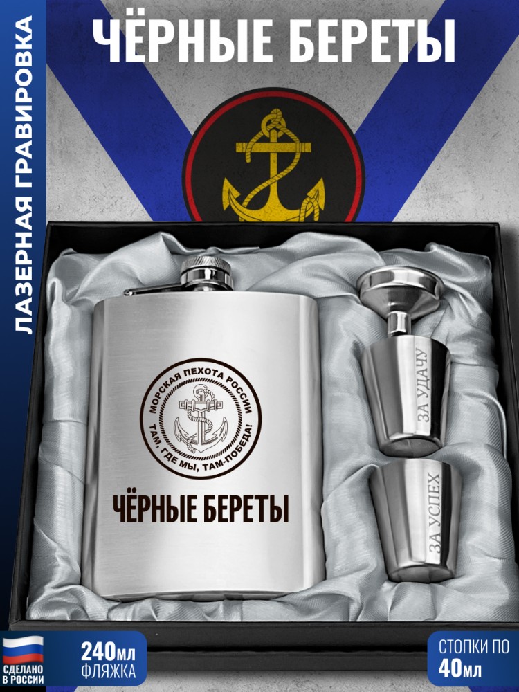 Набор Морская пехота "Чёрные береты" (фляжка, стопки, воронка) - описание товара