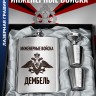 Комплектация: Фляжка, Воронка, 2 рюмки, Коробка с ложементом (19 x 17 x 5 см).