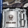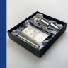 Набор 4 в 1 включает в себя стальную фляжку серебряного цвета (с надписью), что идеально подходит для крепкого или безалкогольных напитков (алкоголя, коньяка, виски, воды и др.).