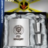 Набор 4 в 1 включает в себя стальную фляжку серебряного цвета (с надписью), что идеально подходит для крепкого или безалкогольных напитков (алкоголя, коньяка, виски, воды и др.).