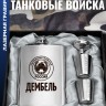 Набор 4 в 1 включает в себя стальную фляжку серебряного цвета (с надписью), что идеально подходит для крепкого или безалкогольных напитков (алкоголя, коньяка, виски, воды и др.).