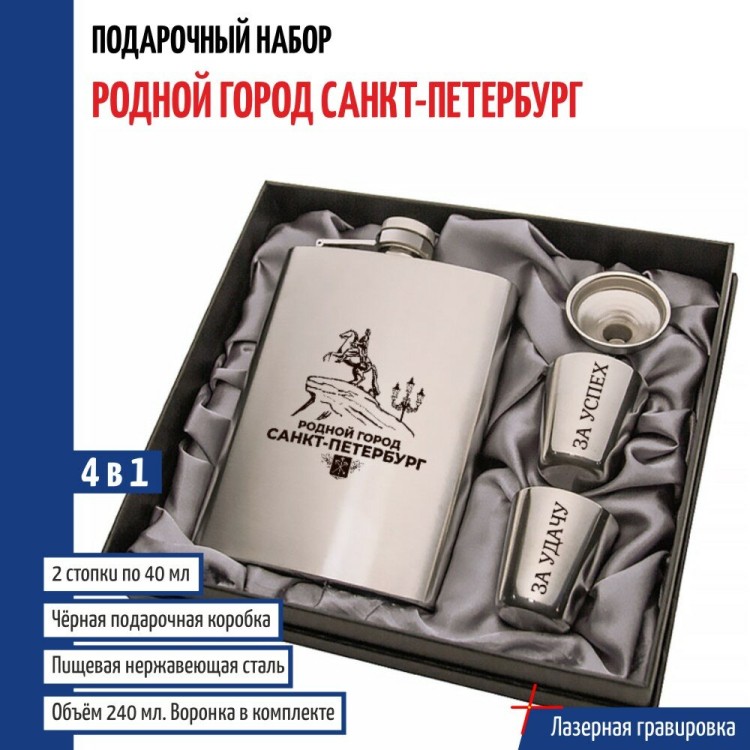 Набор "Родной город Санкт-Петербург" (фляжка, стопки, воронка) - описание товара