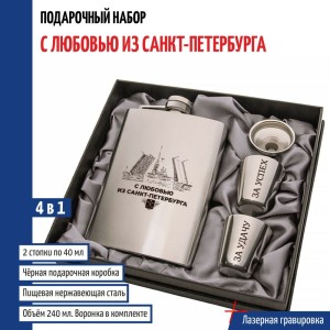 | Комплектация | Фляжка (240 мл), Воронка, Две стопки (по 30 мл) |