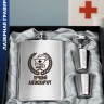 Набор 4 в 1 включает в себя стальную фляжку серебряного цвета (с надписью), что идеально подходит для крепкого или безалкогольных напитков (алкоголя, коньяка, виски, воды и др.).