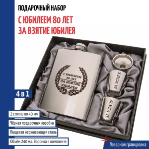 | Комплектация | Фляжка (240 мл), Воронка, Две стопки (по 30 мл) |