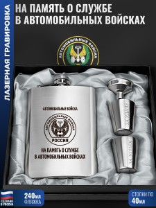 Набор АВ "На память о службе в автомобильных войсках" (фляжка, воронка, 2 стопки)