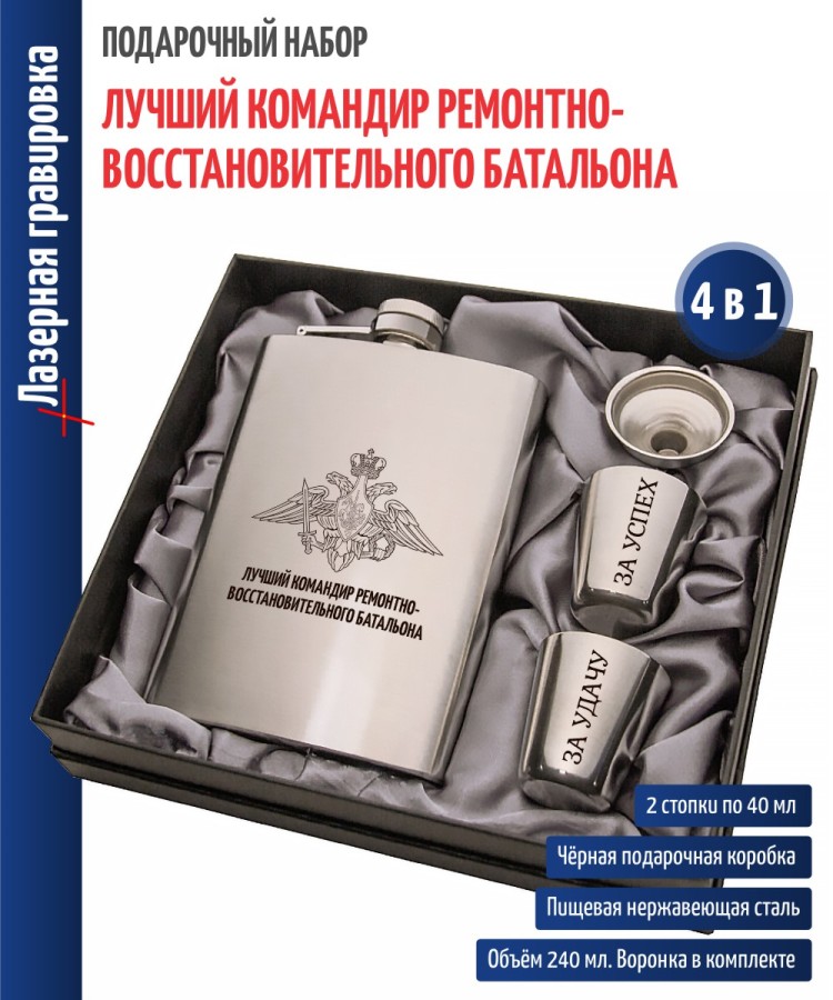 Набор "Лучший командир ремонтно-восстановительного батальона" (фляжка, воронка, стопки) - описание товара