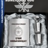Набор 4 в 1 включает в себя стальную фляжку серебряного цвета (с надписью), что идеально подходит для крепкого или безалкогольных напитков (алкоголя, коньяка, виски, воды и др.).