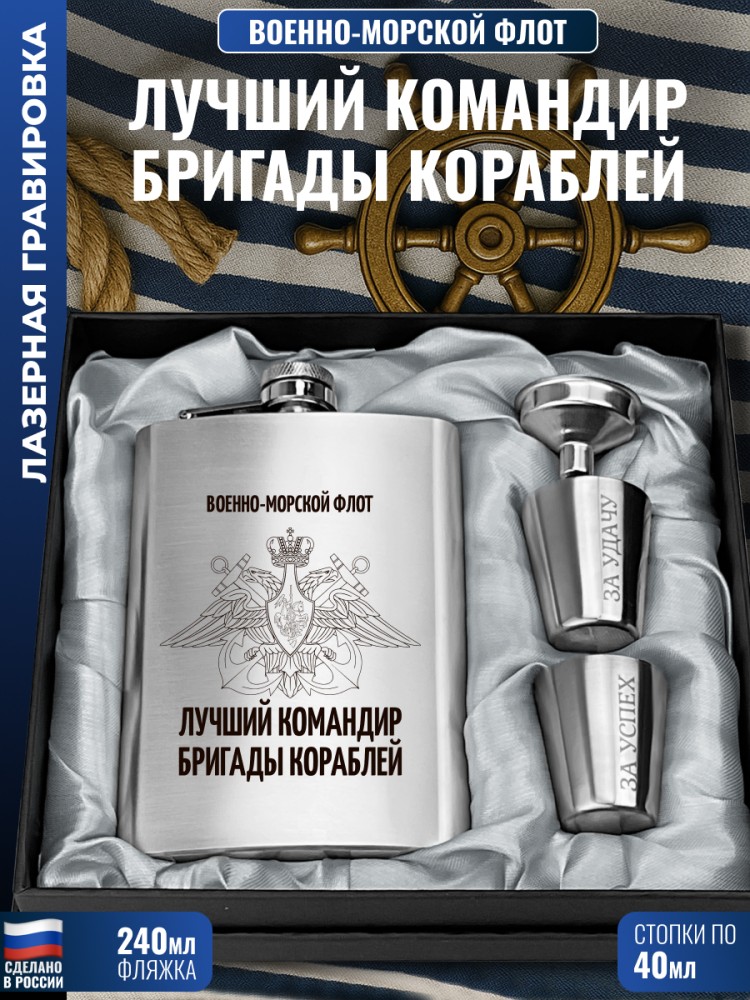 Набор ВМФ "Лучший командир бригады кораблей" (фляжка, воронка, 2 стопки) - описание товара
