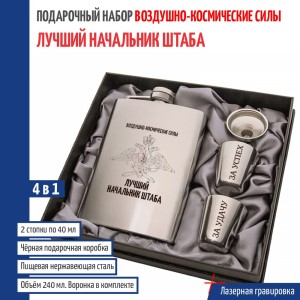 | Комплектация | Фляжка (240 мл), Воронка, Две стопки (по 30 мл) |