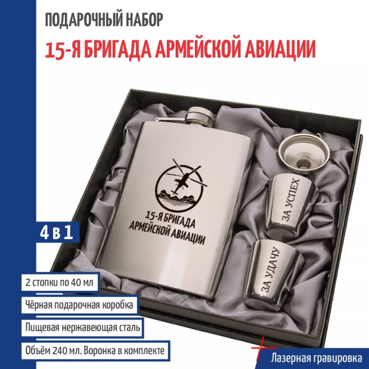 Фляжка: 14 х 9.5 х 2.5 см, из пищевой нержавеющей стали (AISI 304), объем 240 мл (8 oz). Две металлических стопки: нерж., по 30 мл. Воронка: 3,7 х 2,5 х 2,5 см, из нержавейки, слива : 0,7 см, залив (верхняя часть воронки): 3,7 см. Комплектация: Фляжка, Воронка, 2 рюмки, Коробка с ложементом (19 x 17 x 5 см). Набор 4 в 1 включает в себя стальную фляжку серебряного цвета (с надписью), что идеально подходит для крепкого или безалкогольных напитков (алкоголя, коньяка, виски, воды и др.). Плоская армейская фляга из нержавейки пригодится в любой поездке - будь то рыбалка или охота. Оригинальный и практичный комплект, который подойдет на любой праздник или награждение. Сувенир станет отличной памятной наградой за заслуги или победы, подходит как взрослым мужчинам (папе, дедушке, руководителю и начальнику) так и молодым парням (сыну подростку, брату, другу, любимому). Также актуально в качестве подарка и для взрослых женщин (маме, бабушке, коллеге, начальнице) или юным девушкам (дочери, сестре, подруге или любимой) Военно-транспортная авиация играет ключевую роль в оперативной переброске техники и личного состава. Её возможности позволяют быстро реагировать на изменения обстановки, обеспечивая мобильность войск в любых условиях. 2799