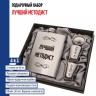Набор 4 в 1 включает в себя стальную фляжку серебряного цвета (с надписью), что идеально подходит для крепкого или безалкогольных напитков (алкоголя, коньяка, виски, воды и др.).